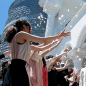 高さ10mのステンドグラスから光があふれ、大理石のバージンロードを神々しく照らします。