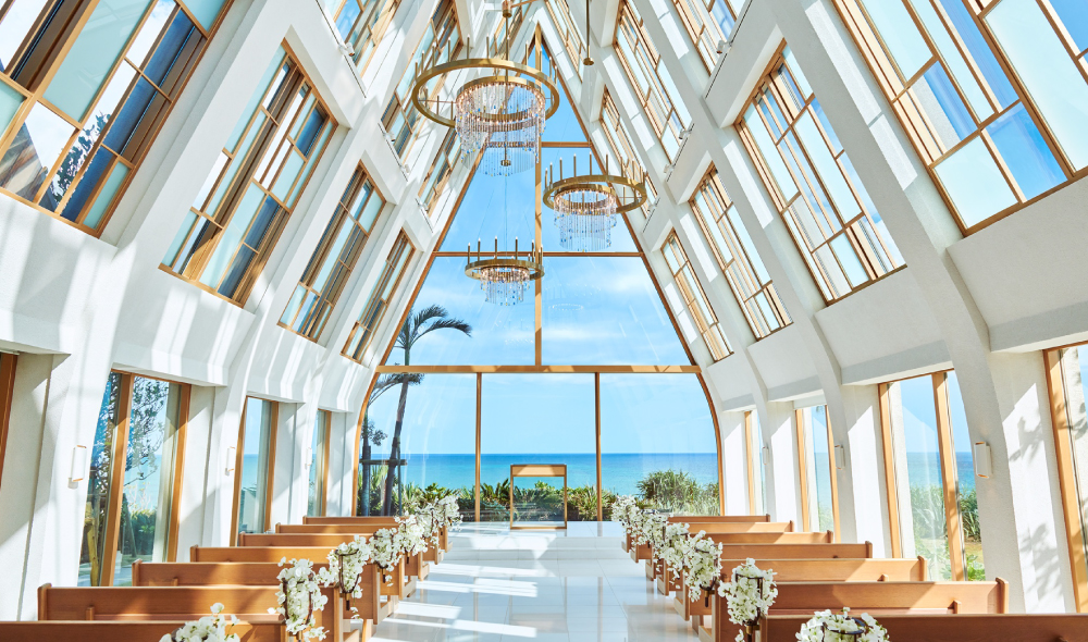 どこまでも続いていく美ら海と沖縄の自然が迎えてくれる場所がふたりのウエディングの舞台。育まれてきた自然が創りあげる新たな「美らの森」が加わり、より特別なひとときを過ごせる「ザ・ギノザリゾート 美らの教会」で感謝の想いが伝わるひとときを。