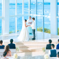 「ホテル・ニッコー・グアム」の敷地内、タモン湾を見渡す高台に立つウエディングビレッジ。大迫力のパノラマビューが贅沢な絶景チャペル。ガラスの祭壇へと続くバージンロードは、グアムで最も長い純白のバージンロード。チャペルの象徴である『クリスタルクロス』が輝く迫力の大聖堂がふたりを祝福。